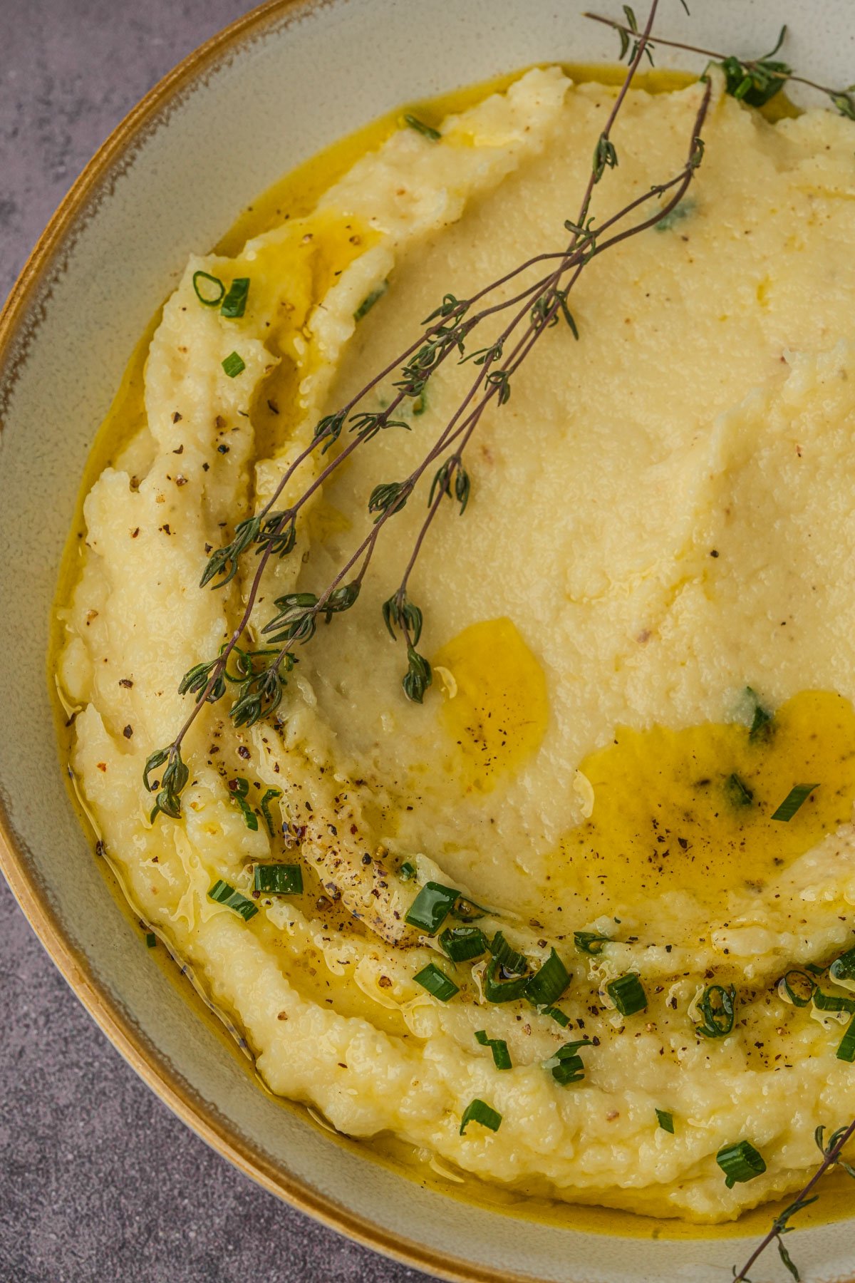 - Optionally garnish with thyme sprigs, a drizzle of olive oil, and a sprinkle of coarse-ground black pepper before serving.