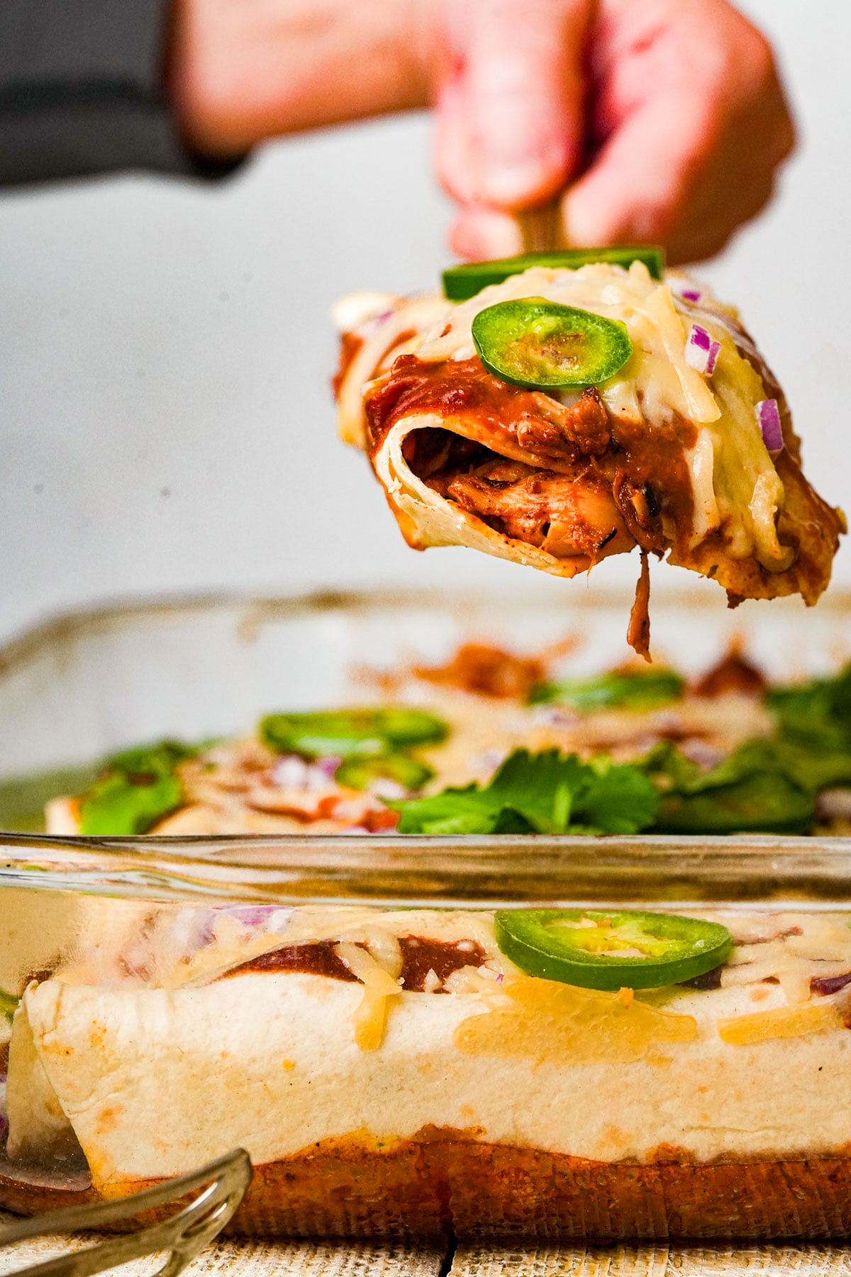 - Rest before serving: Especially if you are garnishing with fresh herbs, let the enchiladas sit for a few minutes after baking so the sauce settles, and so no one at your dinner table melts their darned face off.