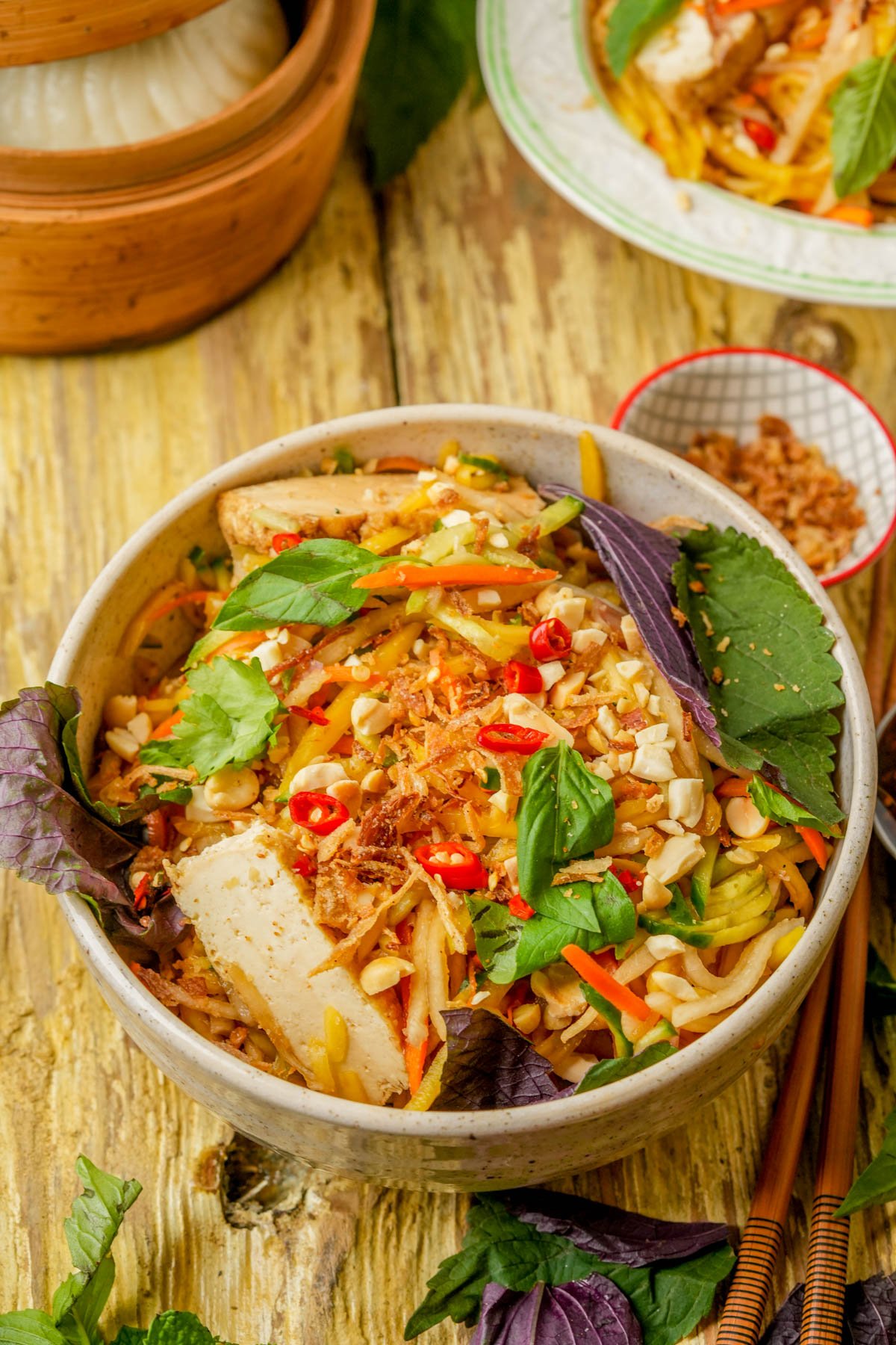 Throw down some ca ri chay (Vietnamese curry), lemongrass tofu, or mi xao xi dau and let the salad be your cooling sidekick that keeps things from getting too heavy.
